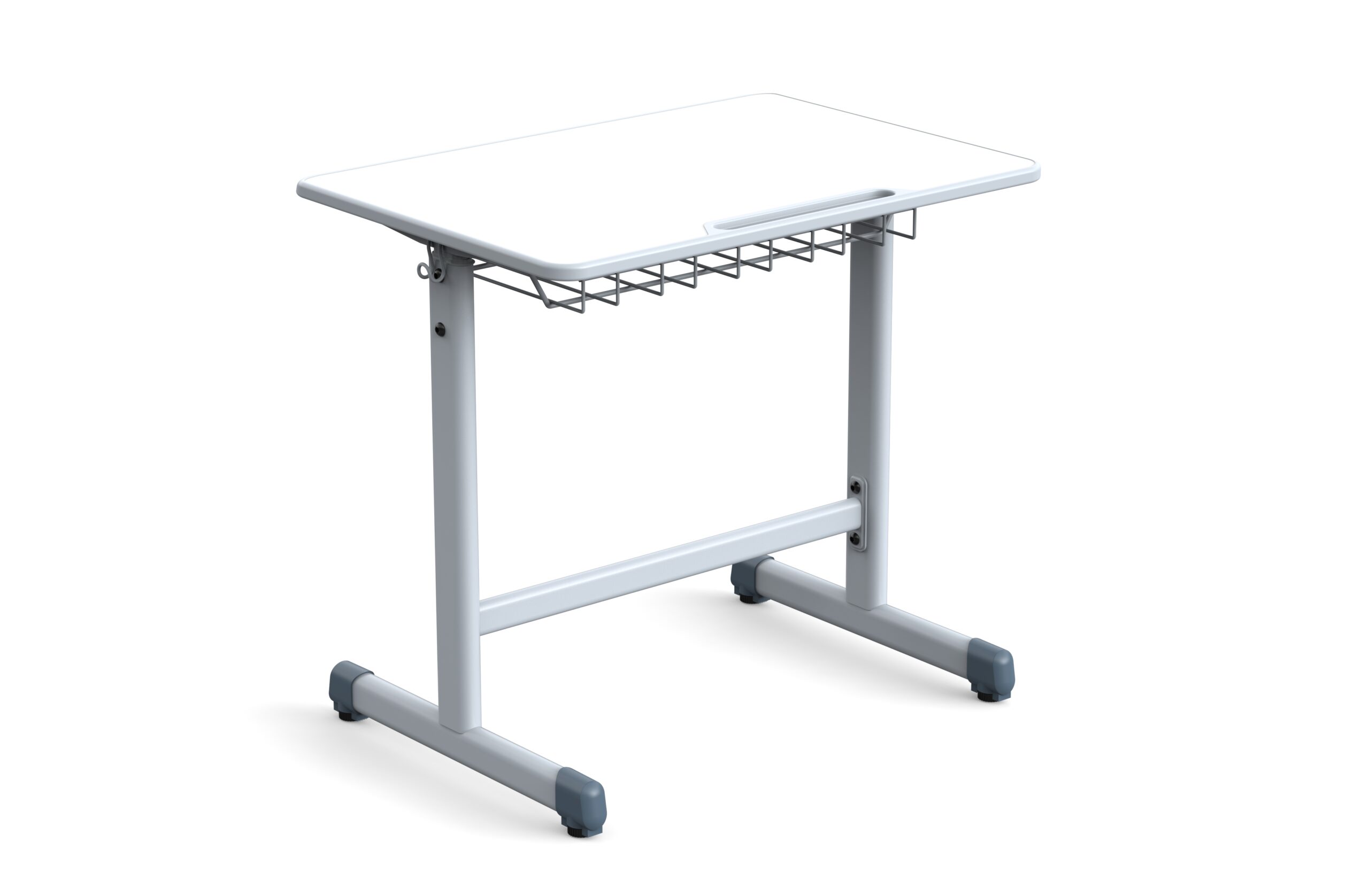 Stalviršiai yra patvarūs, saugiais užapvalintais 3D kraštais, aplietais polimerine danga, naudojant specialią technologiją, jie nesibraižo, yra lengvai valomi. Stalviršyje išlietas rašiklio griovelis. Stalviršio matmenys 70 x 50 cm, plieninis stalo rėmas yra reguliuojamo aukščio nuo 64 iki 76 cm. Stalo rėmas yra šviesiai pilkos spalvos, bet esant poreikiui galimos ir kitos spalvos.